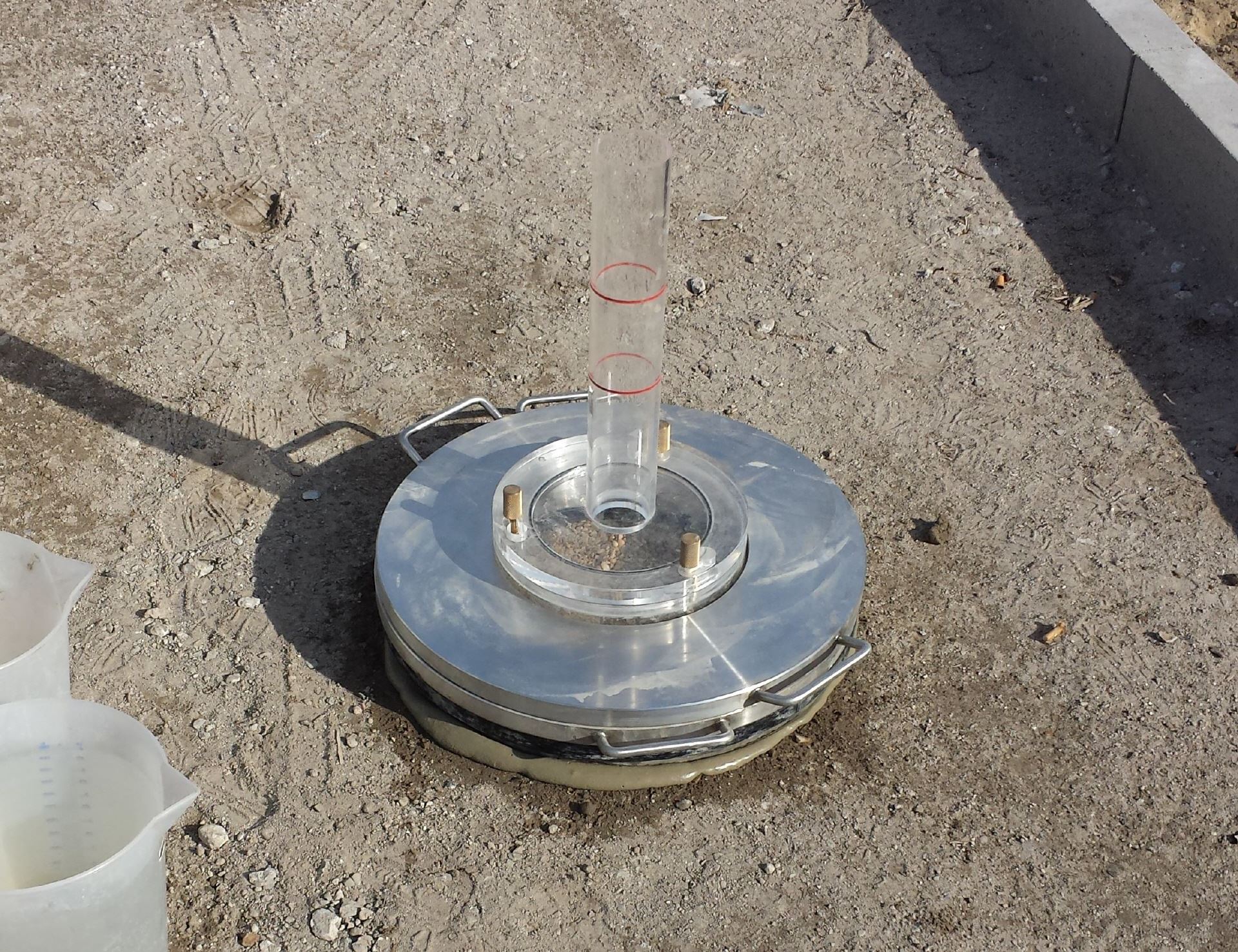 Zusätzlich können wir vor Ort in situ-Versuche mittels Doppelring-Infiltrometer durchführen.