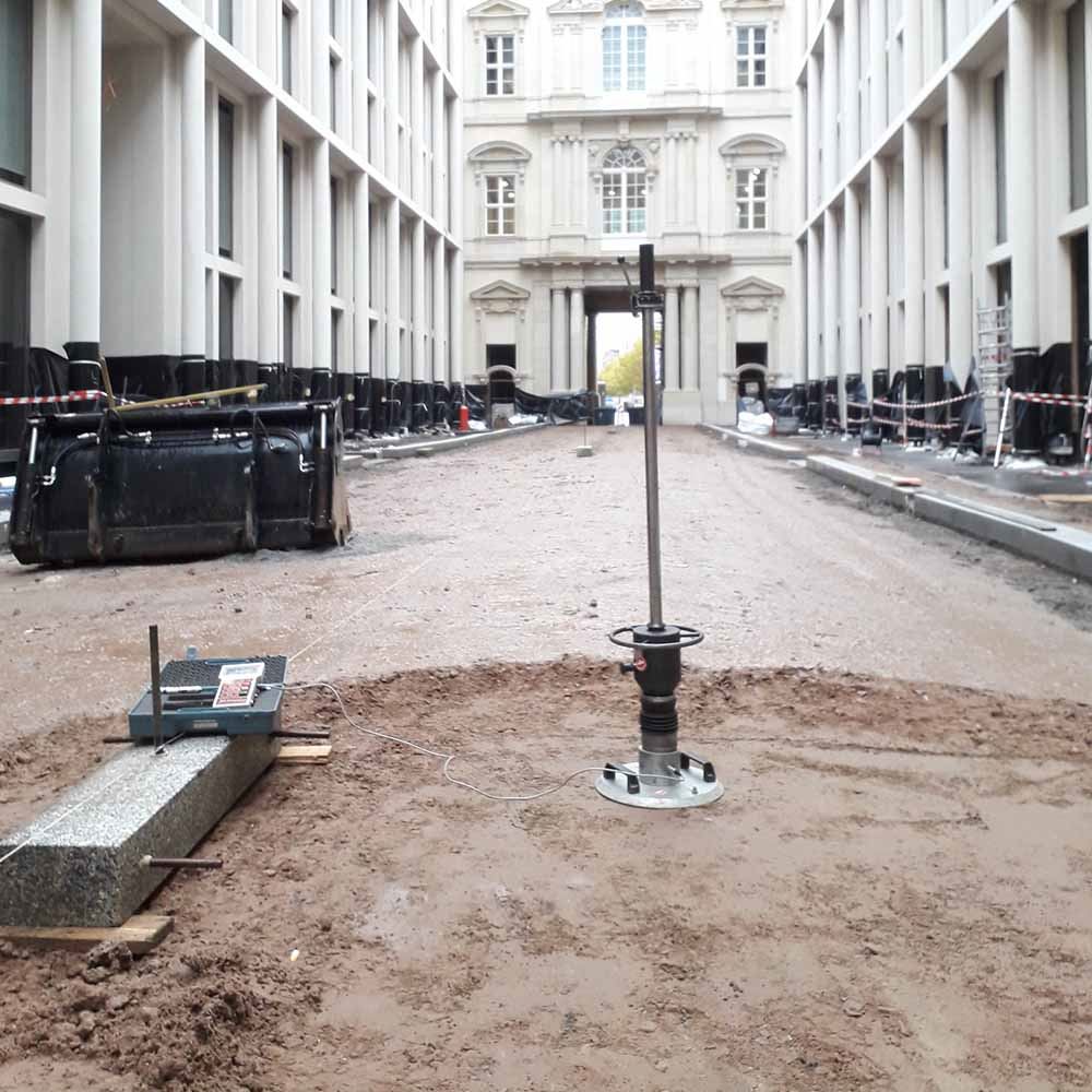 Die Durchführung von Güteprüfungen bei Baumaßnahmen ist zur Qualitätssicherung unerlässlich. Im Rahmen der Eigenüberwachung bieten Güteprüfungen wie die Ermittlung der Tragfähigkeit mittels statischem oder dynamischem Plattendruckversuch, des Verdichtungsgrades DPr mittels Ausstechzylinder, Densitometer oder Sandersatzmethode und zugehörigem Proctorversuch sowie die Bestimmung der Lagerungsdichte mittels leichter oder schwerer Rammsondierung (DPL, DPH) die Möglichkeit der laufenden Qualitätskontrolle der eigenen Arbeiten sowie einen Nachweis gegenüber dem Auftraggeber nach Abschluss der Baumaßnahme.